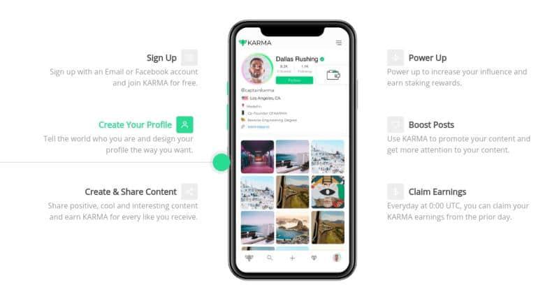 KARMA 是 Instagram 的一个复制品,它构建于开源区块链平台 EOSIO 之上。每当你的内容获得了点赞和分享,你就会得到 KARMA 代币。你可以用这些代币来推广你的内容,或者通过一个合作的加密货币交换方,来将其转换为现实货币。