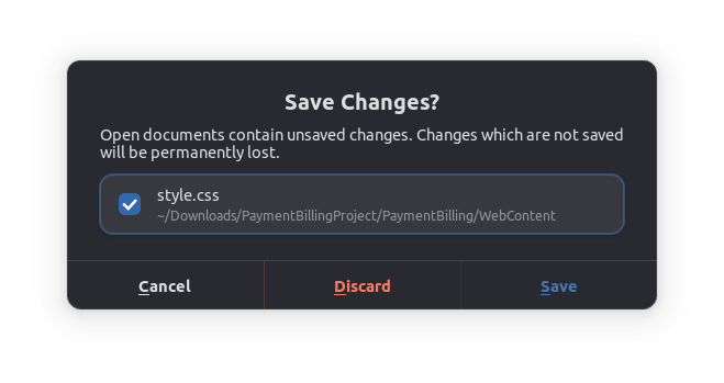 在你修改文件后点击关闭窗口时,编辑器会提醒你选择保存修改还是放弃修改。