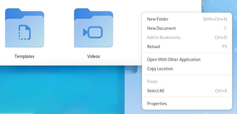 当你将某些文件添加到 模板 目录中时,你可以在执行右键单击时在上下文菜单中找到这个 “ 新文档 ” 选项。