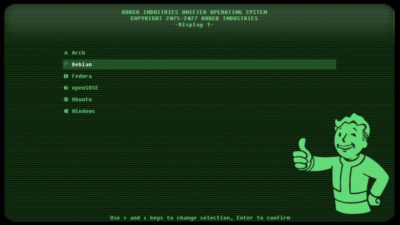 这是更新后的带有复古主题的 GRUB 菜单。