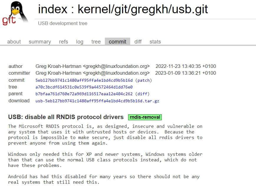 发生了什么? 周一,Greg Kroah-Hartman 创建了 usb.git rndis-removal 分支,其中他提到禁用 Linux 上所有 RNDIS 协议驱动程序的实现。