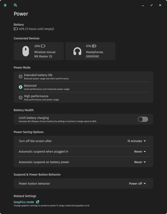 开发人员将图形模式和深浅色选项移至显示设置面板。在测试过程中,他们发现大多数用户到显示设置中去是希望找到这些设置。