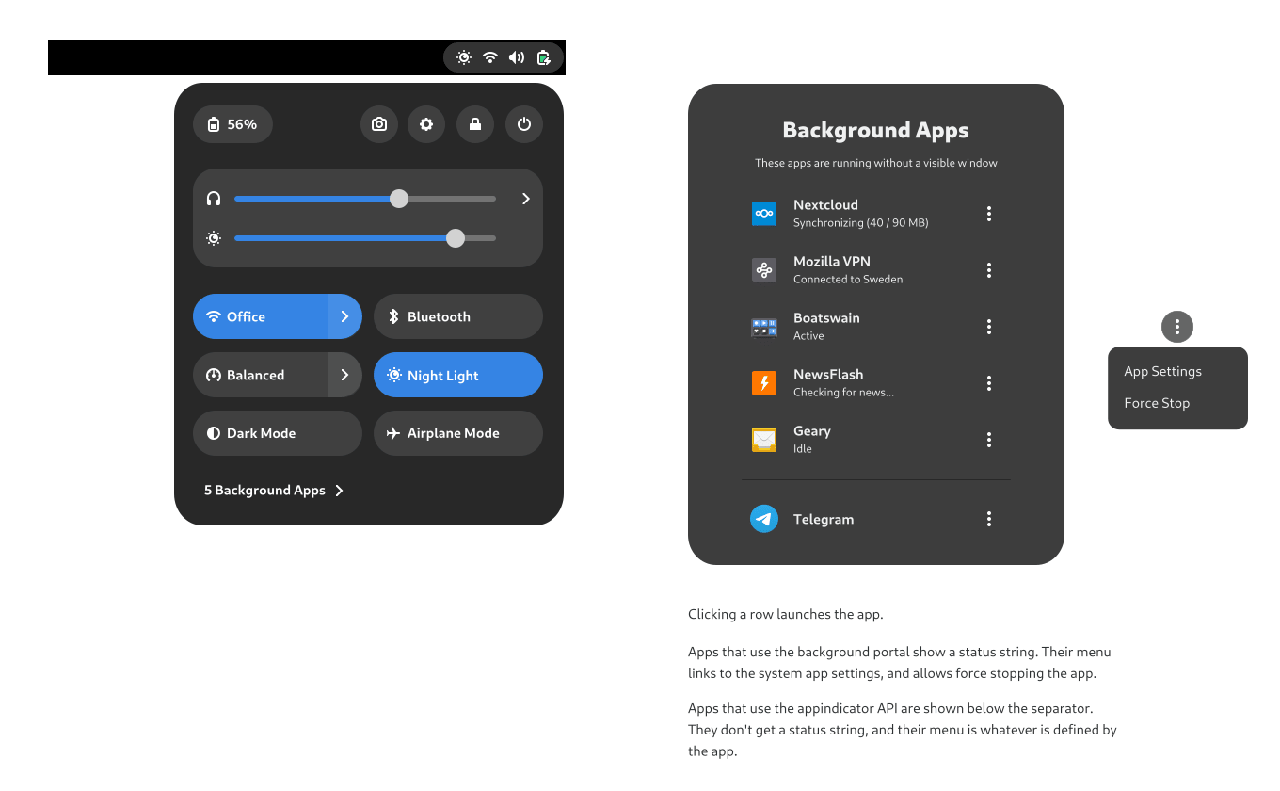 这还不是全部;GNOME 44 的快速设置菜单现在有一个检查在后台运行的应用程序的巧妙方法。