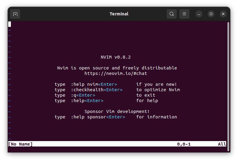 要在安装完成后使用 Neovim,只需从应用菜单启动它,方法是按超级键并输入 neovim。这将打开一个带有 Neovim 的终端窗口。