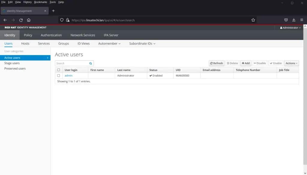 完美,上面的输出确认管理员获得了令牌。现在,尝试访问 FreeIPA Web 控制台,在网络浏览器上输入以下 URL: