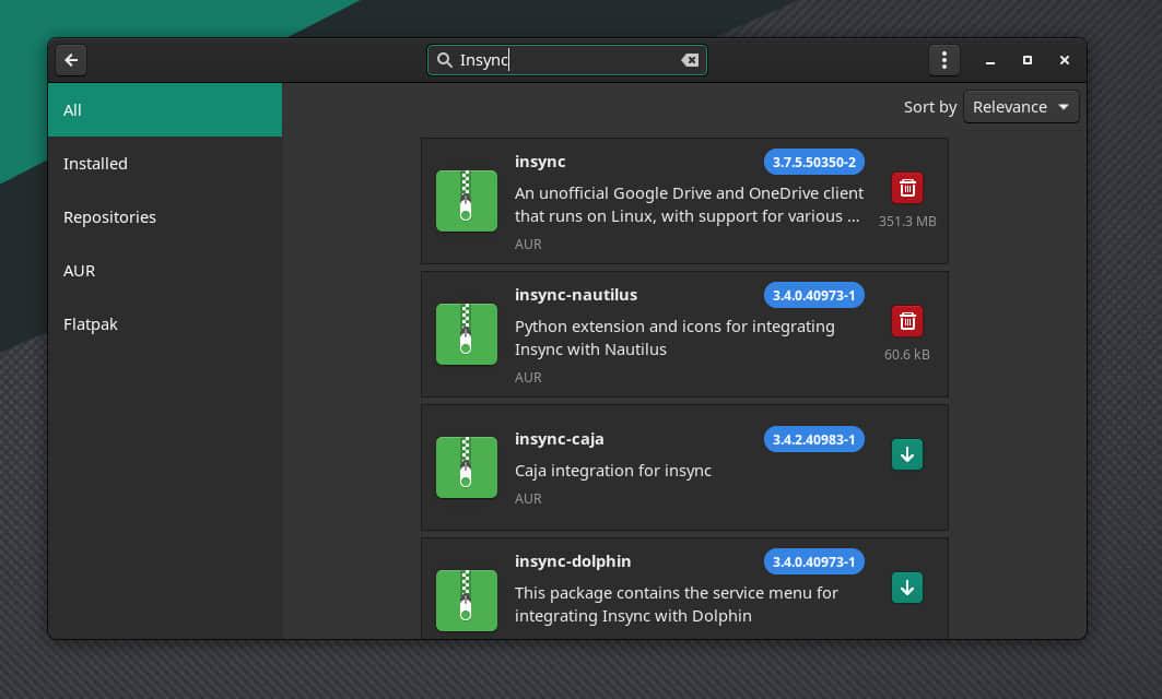 幸运的是,很有可能在 AUR 或社区或发行版开发者维护的仓库中找到所需的软件。就像我能够在 Manjaro Linux 上运行 Insync,并使用文件管理器的集成扩展。