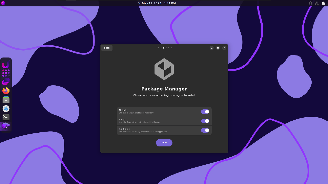 当你进行下一步时,你可以在三种不同的包管理器中进行选择:Flatpak ,Snap,以及 AppImage。