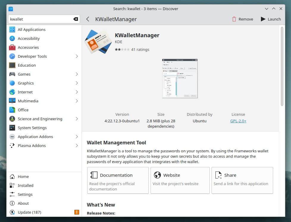 无论是存储网站凭据还是 SSH 密钥密码,你都可以使用 KDE 钱包来完成这一切。它与系统的其余部分集成良好,没有任何麻烦。你可以将其配置执行更多操作(或与更多应用和窗口管理器集成)。