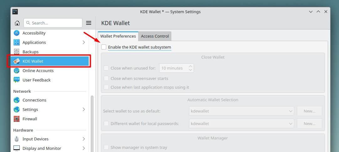 有时,当你与处理密码/凭据的操作交互时,KDE 钱包可能会弹出。因此,如果你遇到这种情况,我们的指南可以帮助你禁用钱包。