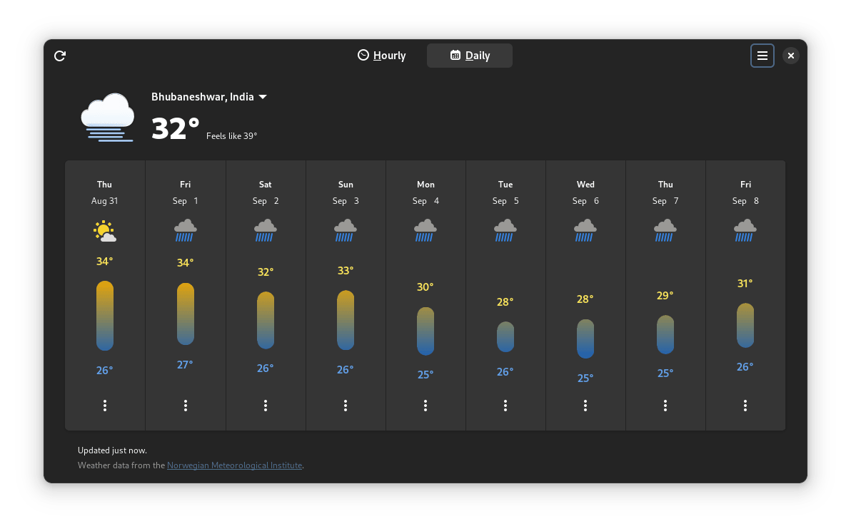 接下来是“ 天气 ”应用,其增大了默认窗口大小以容纳所有温度计小部件。这款应用还可以记住你最后一次设定的窗口大小,便于在你下次打开时,直接展示该大小。