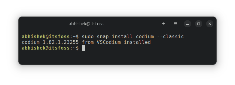 打开终端并使用以下命令安装 VSCodium Snap 包: