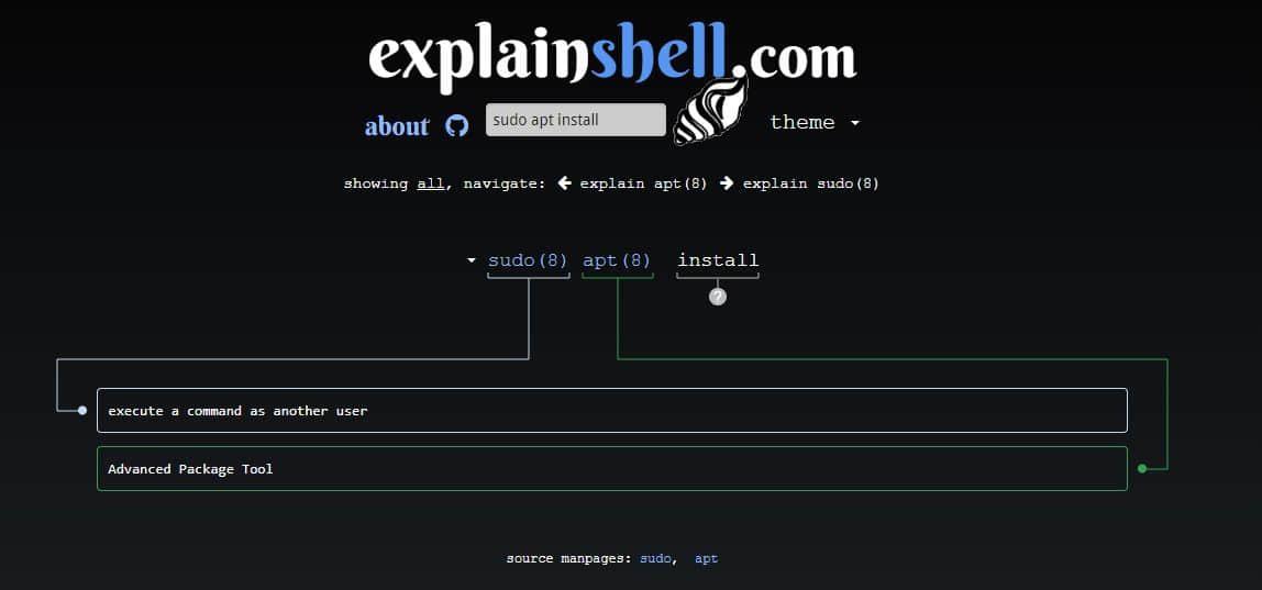 它主要显示从 Ubuntu 的手册页库中提取的信息。所以,无论你是正在进行软件安装,进行 Git 提交,还是连接到 SSH,你都可以借助 ExplainShell 来深入理解各种命令。