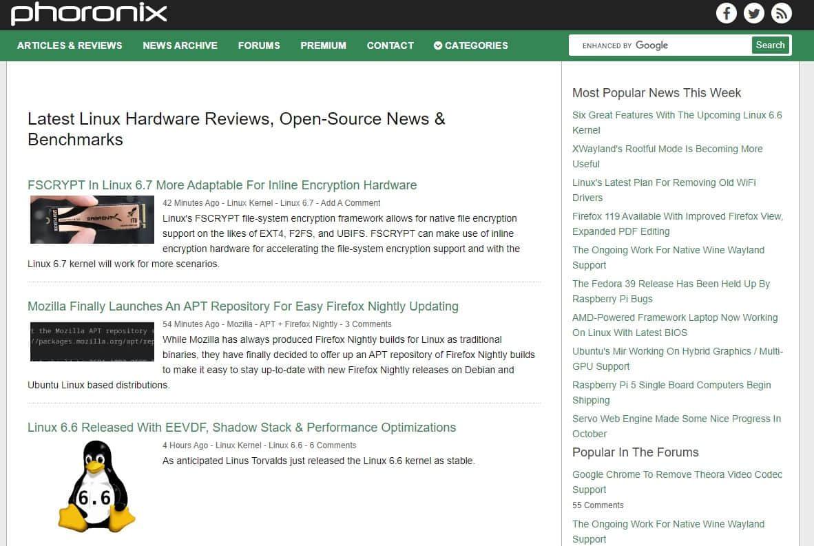 Phoronix 是目前为止最老牌的 Linux 网站之一,专注于发布面向硬件的内容。