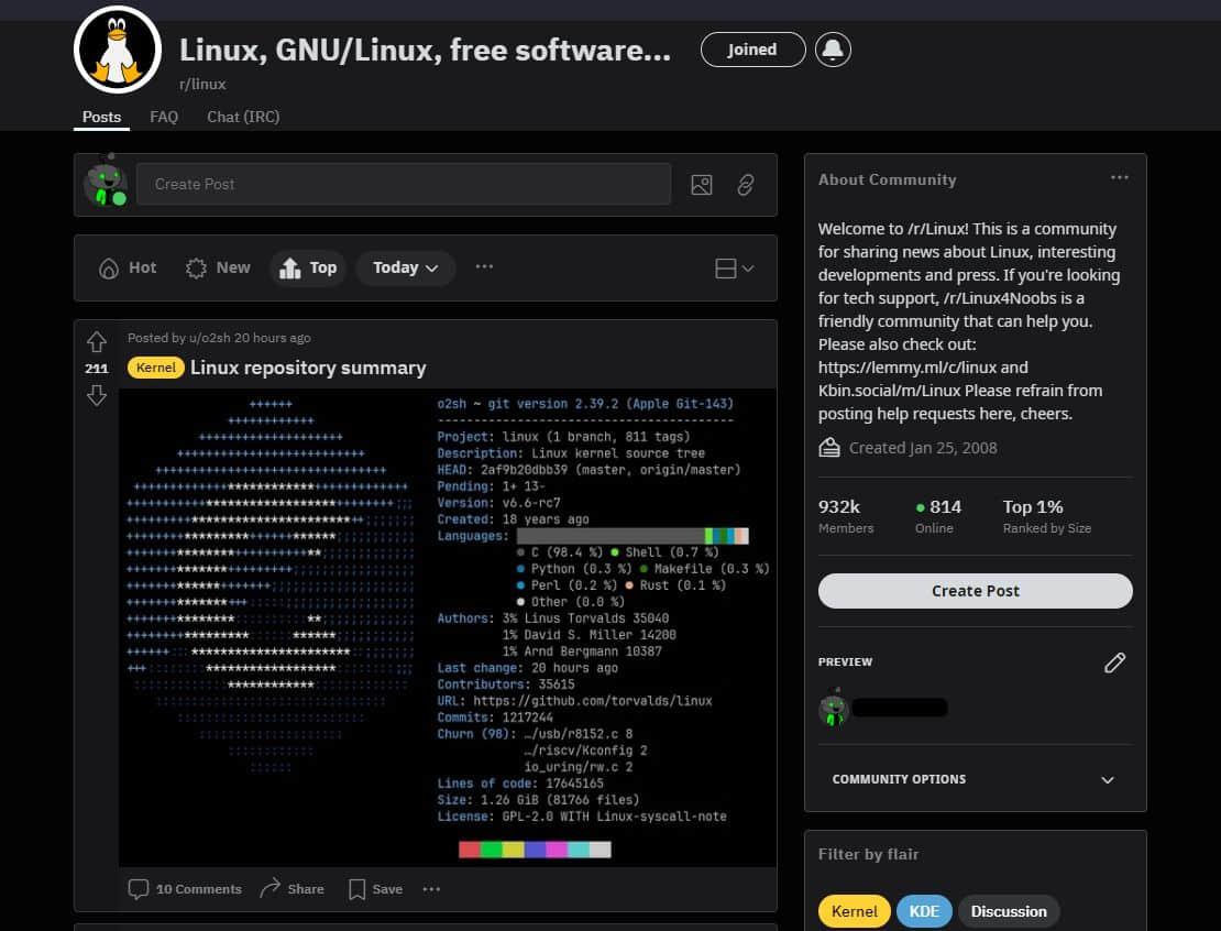 /r/Linux 子论坛 是一个值得你收藏的社区,你可以在这里读到开源世界和 Linux 领域的最新动态。也许 Reddit 用户并没有你想象中那么友好,但如果你想随时了解最新的变化,这个子论坛绝对值得你的收藏。