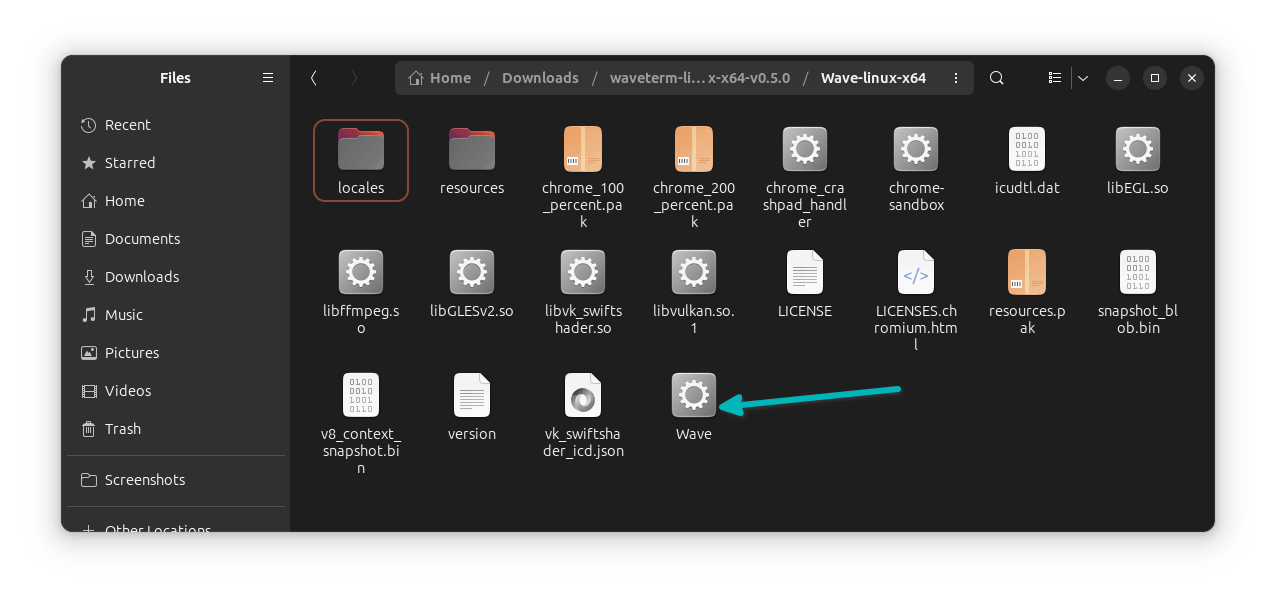解压它后,你会发现,它有一个命名为 Wave 的可执行文件,这个文件可以用来启动应用程序。