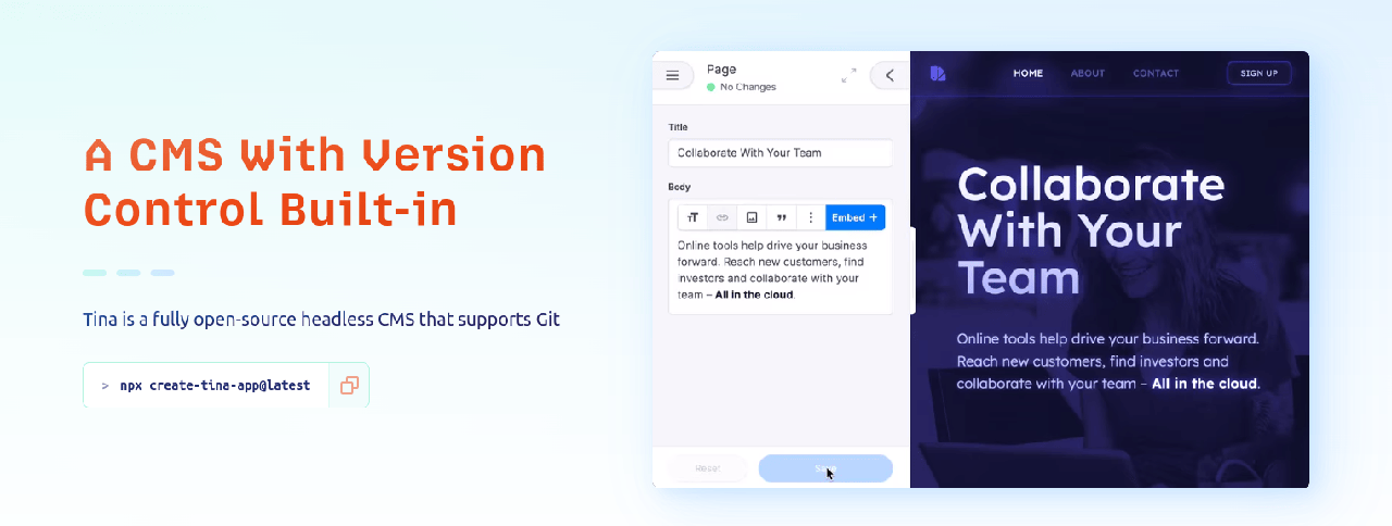 就 TinaCMS 而言,它是一款集成了 Git 版本控制的 无头 CMS,重点是代码优先和完全类型化。像 Unity 这样的知名公司就使用它来维持其文档的更新。?