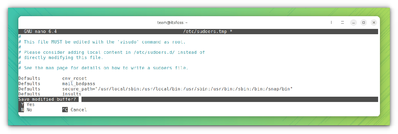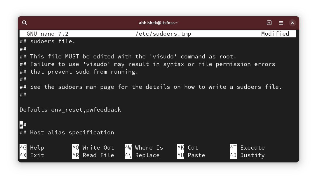 传统上,visudo 命令会在 Vi 编辑器中打开 /etc/sudoers 文件。如果你用的是 Ubuntu,那么会在 Nano 中打开。