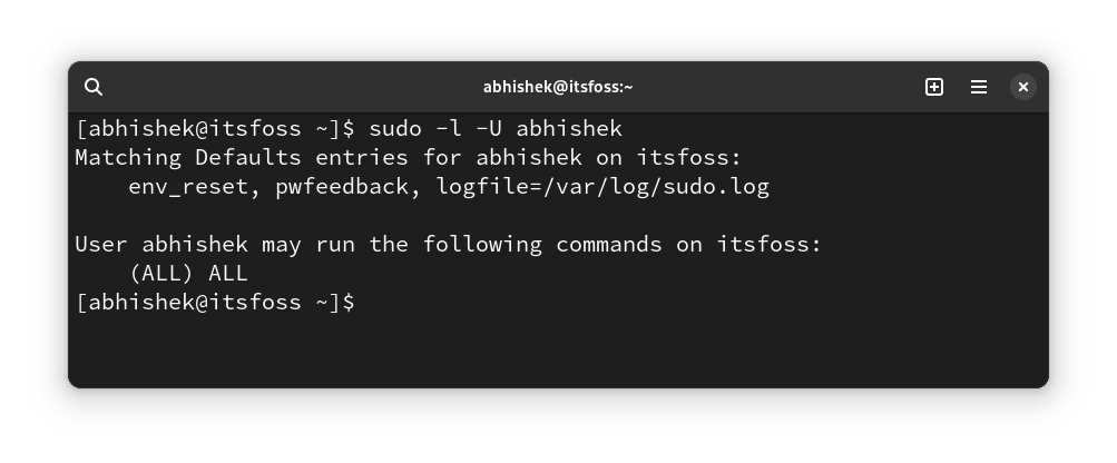 这将显示出用户具有执行部分命令或所有命令的 sudo 权限。