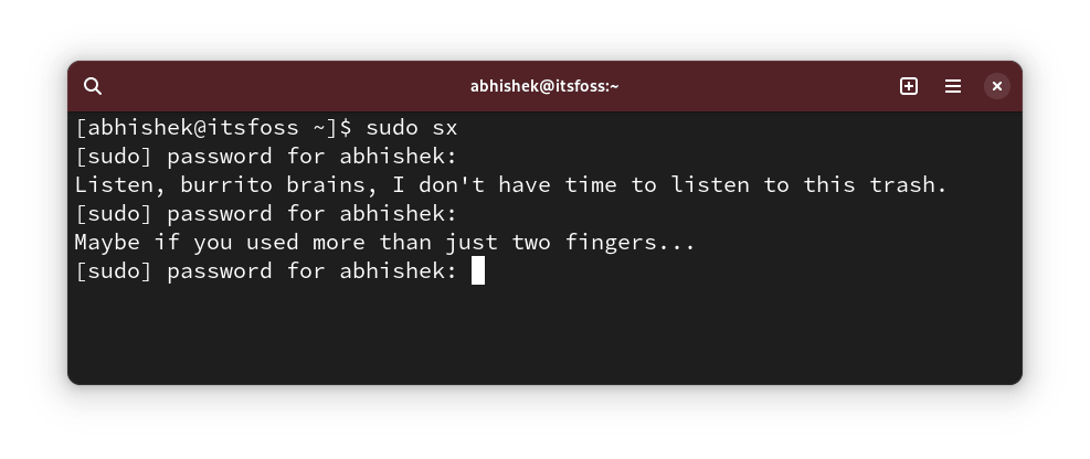 这个小技巧就是,在你每次输错密码时,让 sudo 抛出随机的“侮辱”。