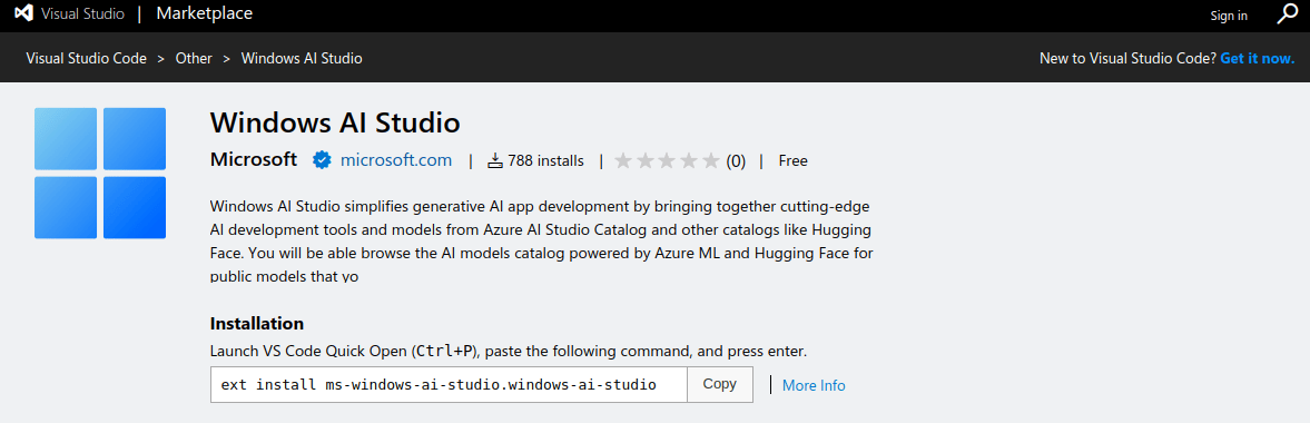 你可以从 VS 市场 获得 Windows Studio AI。请保证你已经为 WSL 配置了 Ubuntu 18.4 或更高版本作为默认系统。此外,还需要记得使用一款性能良好的 NVIDIA GPU。