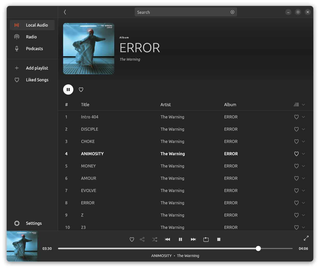 这是一款基于 Flutter 开发的应用,提供了直观的用户界面和对音乐播放的基本控制功能。当然,如果这不合你的口味,我们的 最佳 Linux 音乐播放器列表 中还有更多的选择。