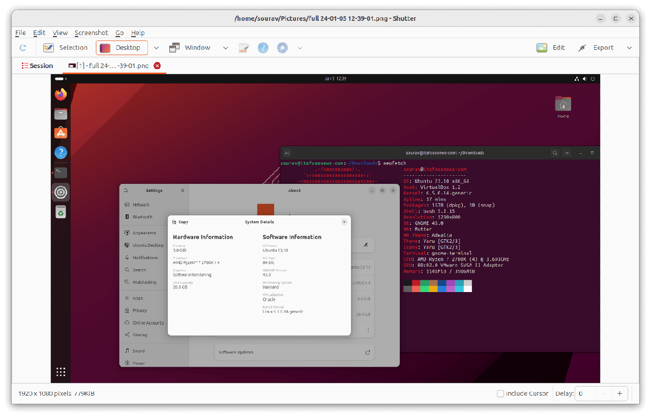 如下图所示,这个项目与你从 Shutter 那里期待的体验几乎无二,你可以在界面上发现所有熟悉的选项。在运行着 Ubuntu 23.10 的虚拟机上用这个工具截图时,我并未感到有什么两样。