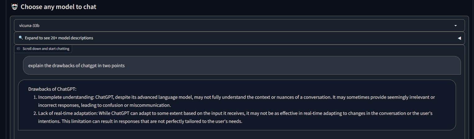 这是一个你可能想要验证的有趣声明。你可以选择 Vicuna 作为语言模型,并在 Chatbot Arena 进行尝试。