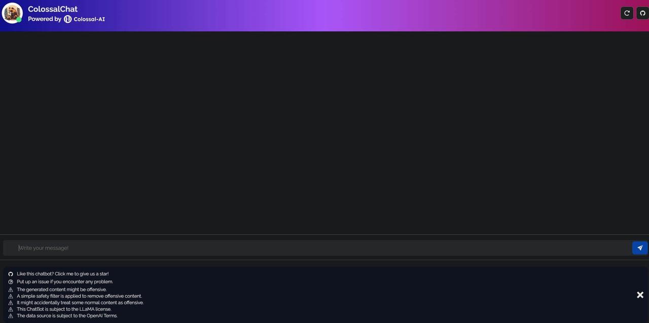 ColossalChat 是以此项目为基础打造的聊天机器人。然而遗憾的是,在本文撰写之时,它的演示暂未上线。