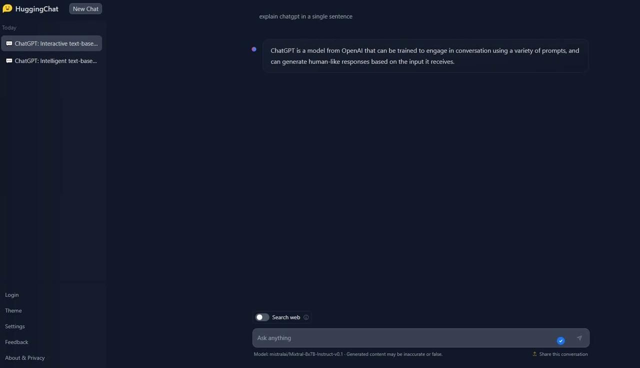 HuggingChat 正是 Huggingface 打造的开源的 ChatGPT 替代品,使用了社区中最优秀的 AI 模型来实现聊天机器人的功能。