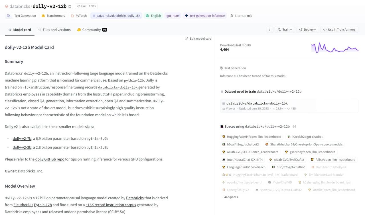 Dolly 是另一个在 Databricks 机器学习平台上训练的语言模型,并已获得商业使用许可。